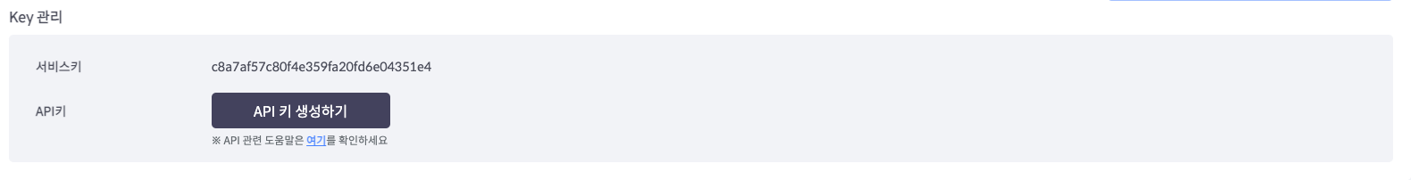 [설정 > 사이트 > 키 관리]에서 API 키를 발급해 주세요.