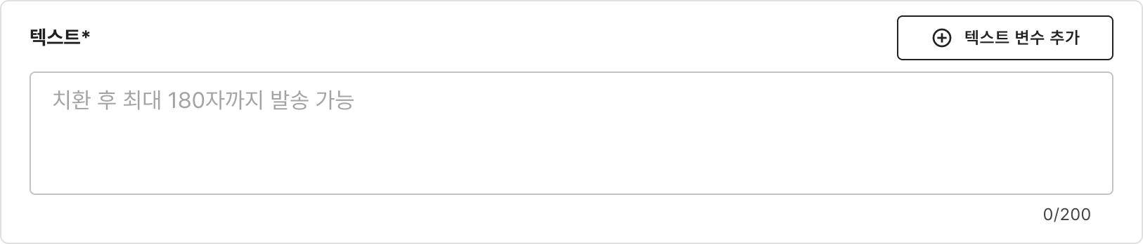 변수 사용 시 치환 후 최대 180자까지 작성하여야 발송 가능합니다.