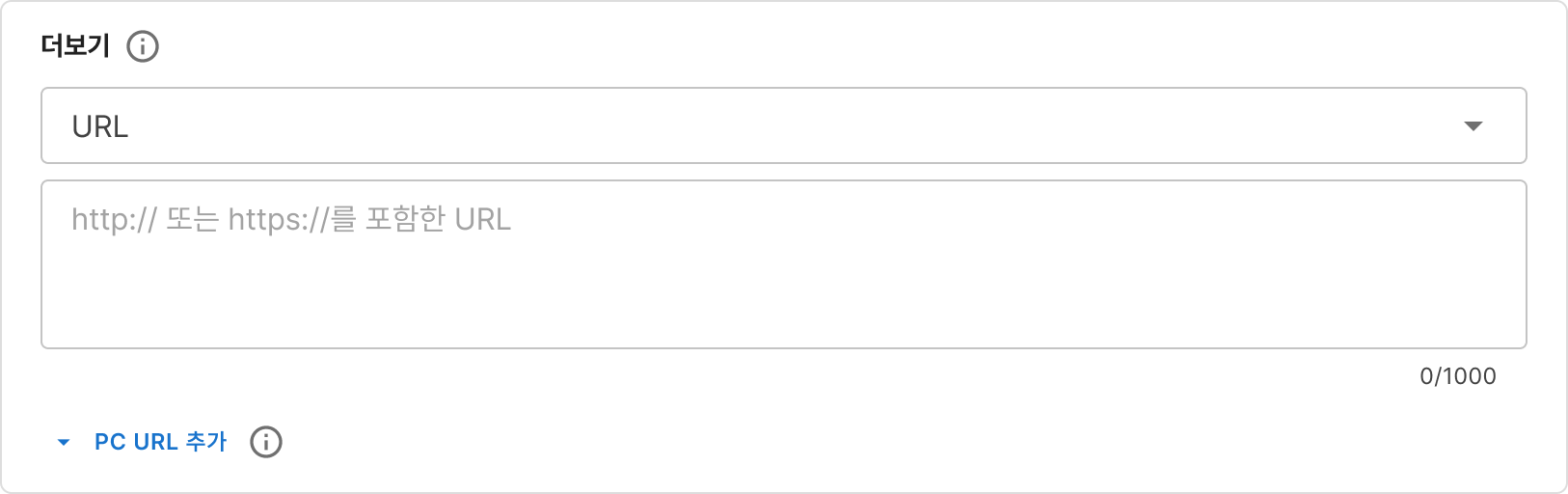 랜딩 URL 영역에서는 해당 상품을 클릭했을 때 랜딩될 URL을 추가합니다.