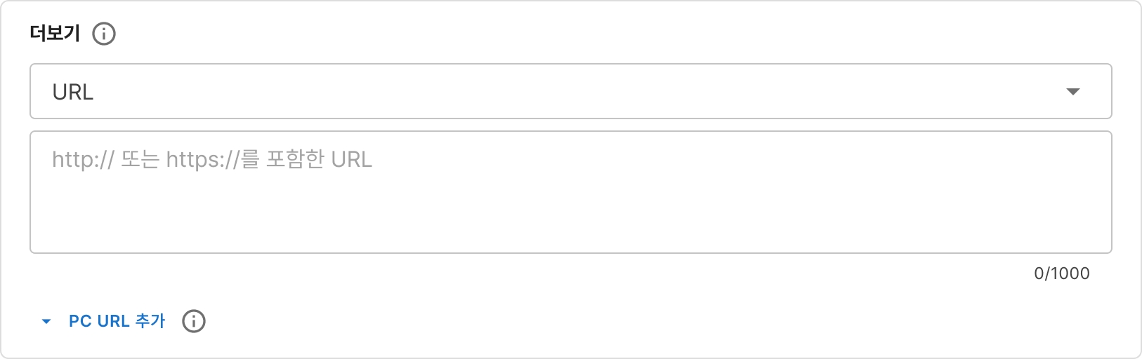 URL 관련 텍스트 변수는 한 영역에 한 개만 추가 가능합니다.