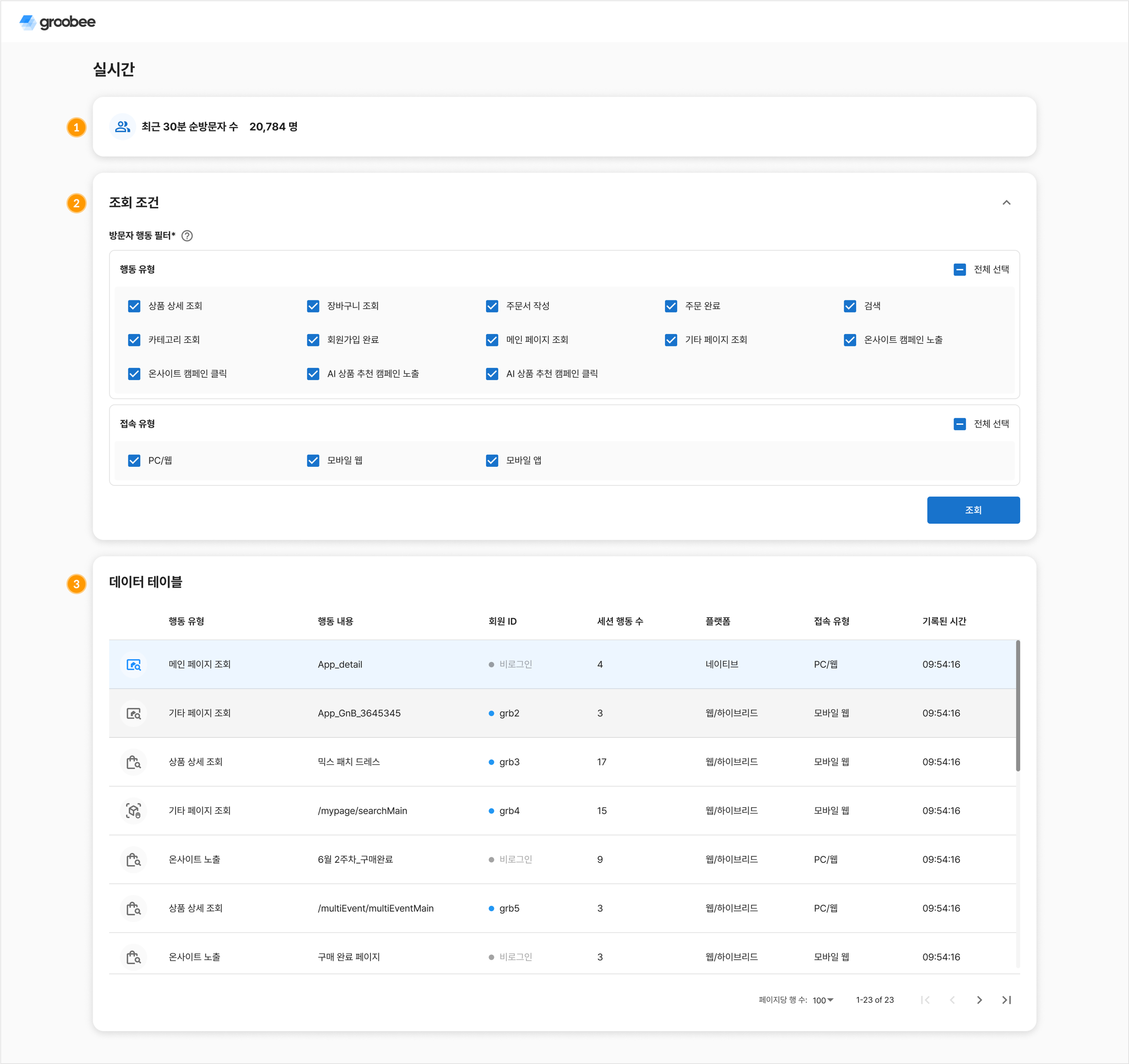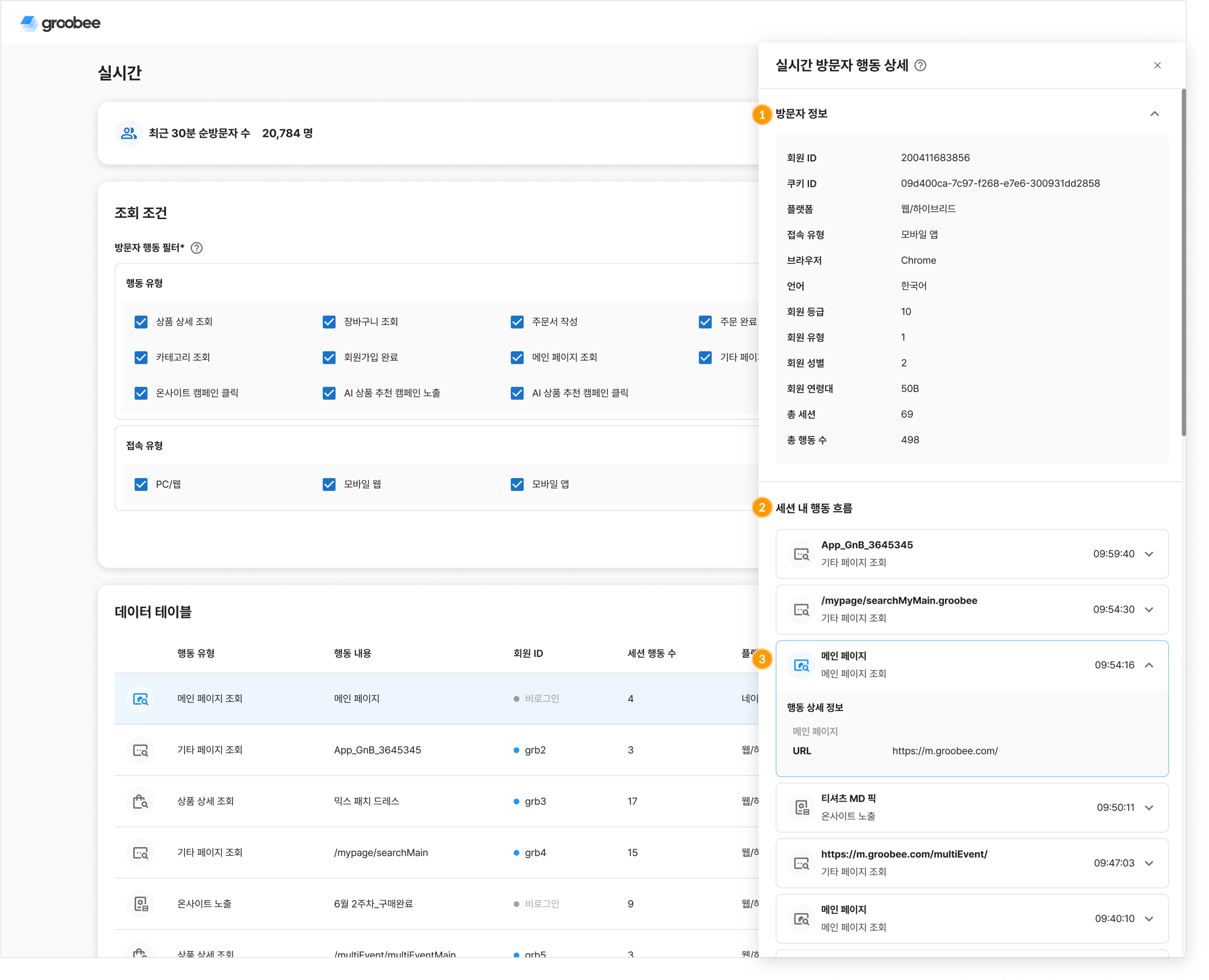 실시간 방문자 행동 상세