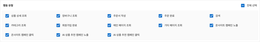 행동 유형의 세부 내용이 표시됩니다. 행동 데이터가 수집되었더라도, 세부 데이터를 수집하지 않는 경우 '데이터 없음'으로 표시될 수 있습니다.