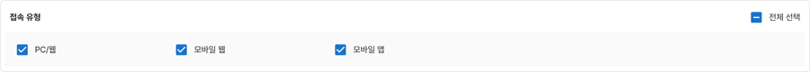 ・ 방문자가 이용 중인 플랫폼이 표시됩니다. ・ 웹/하이브리드 : PC 웹, 모바일 웹, 모바일 앱(하이브리드) 방문자 네이티브 : 모바일 앱(네이티브) 방문자