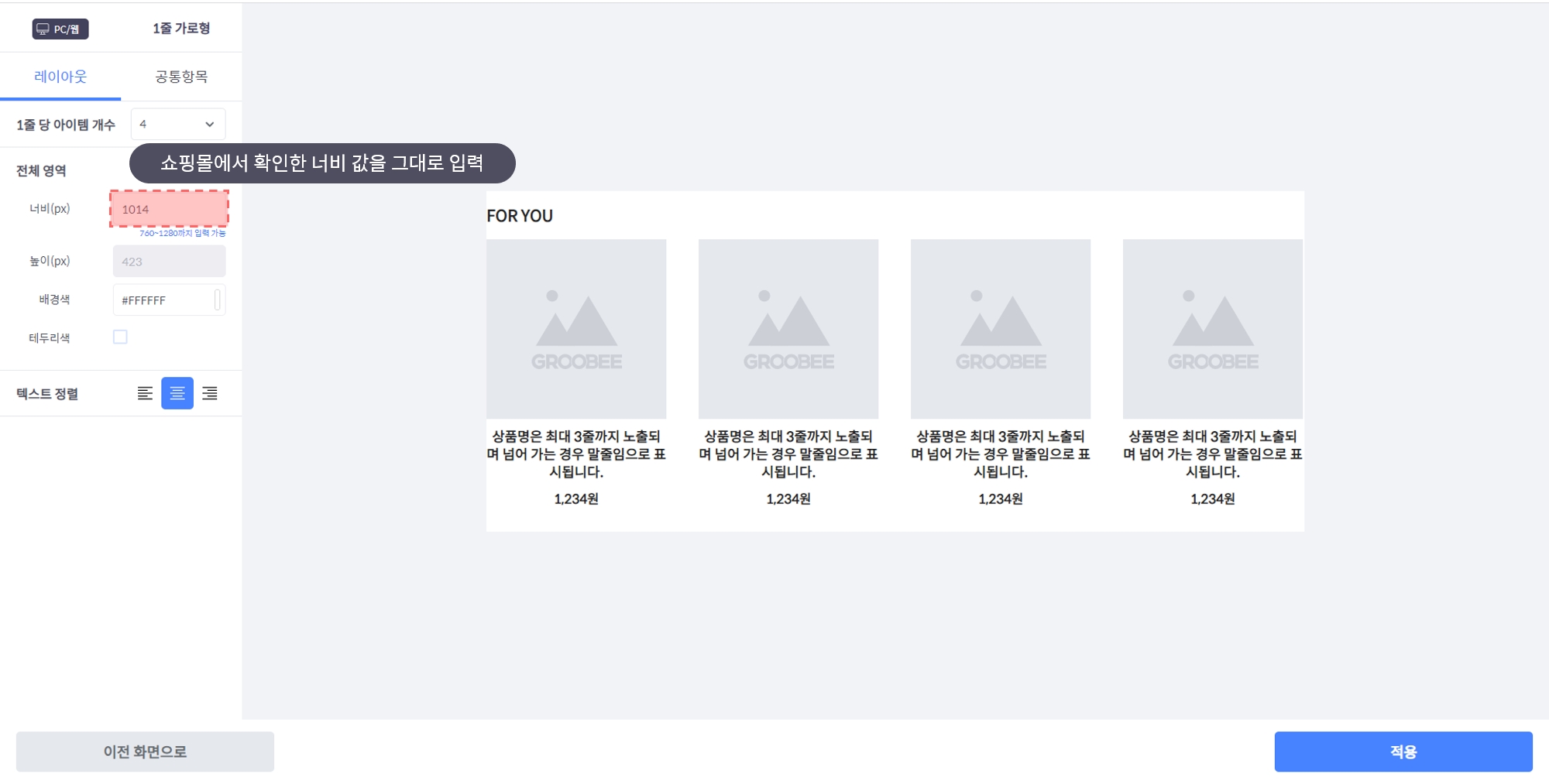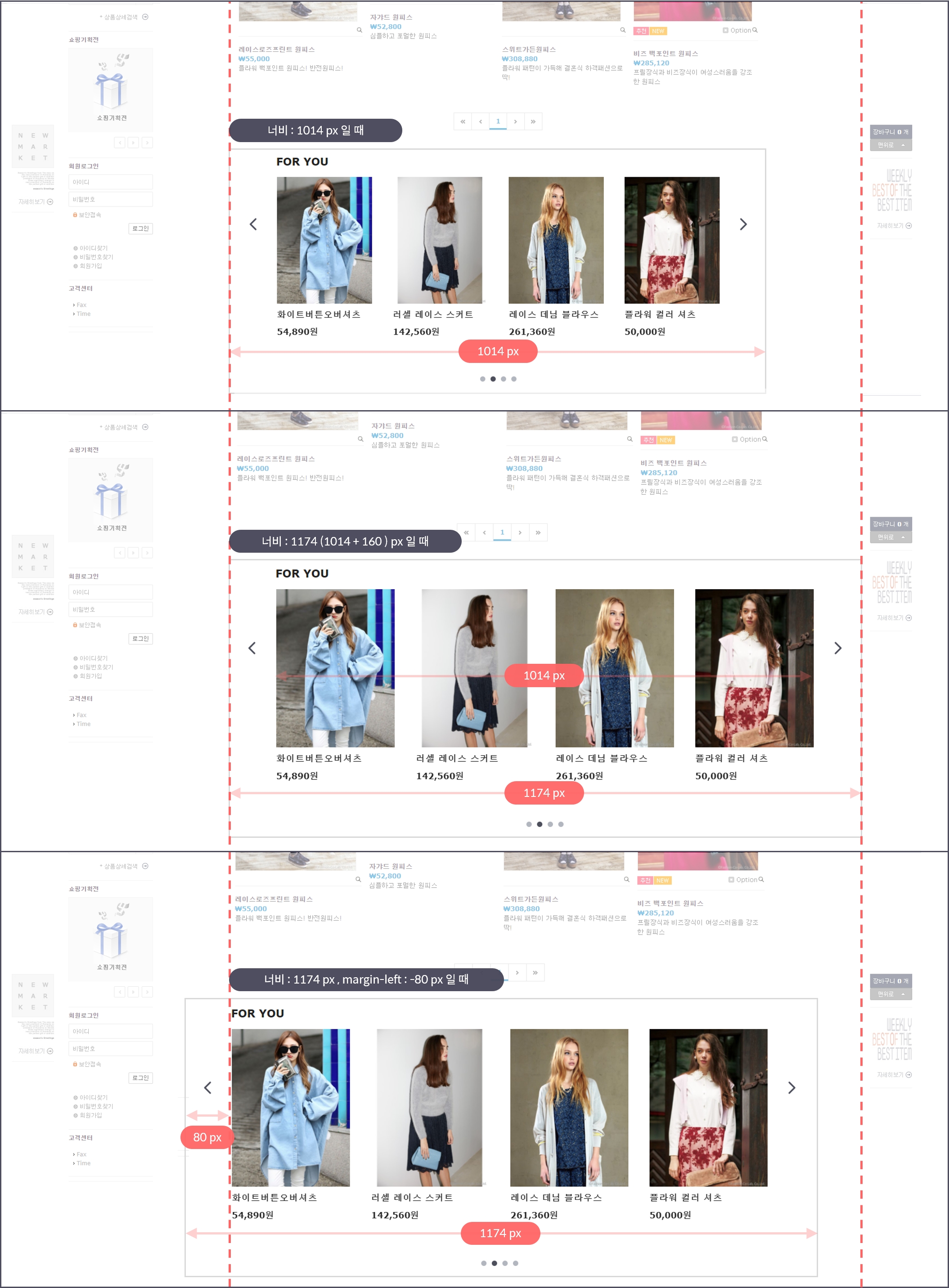 PC/웹 환경의 쇼핑몰에 추천 상품을 진열할 때에는 추천 영역의 너비를 정확하게 지정해주는 것이 중요합니다.