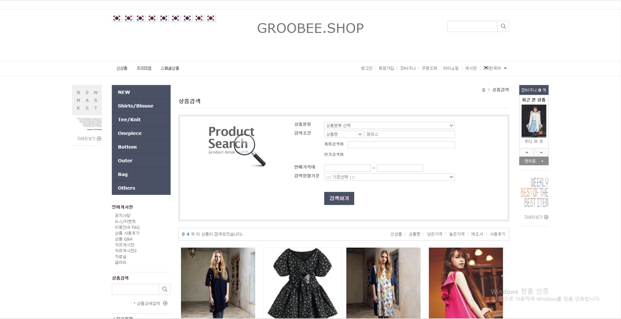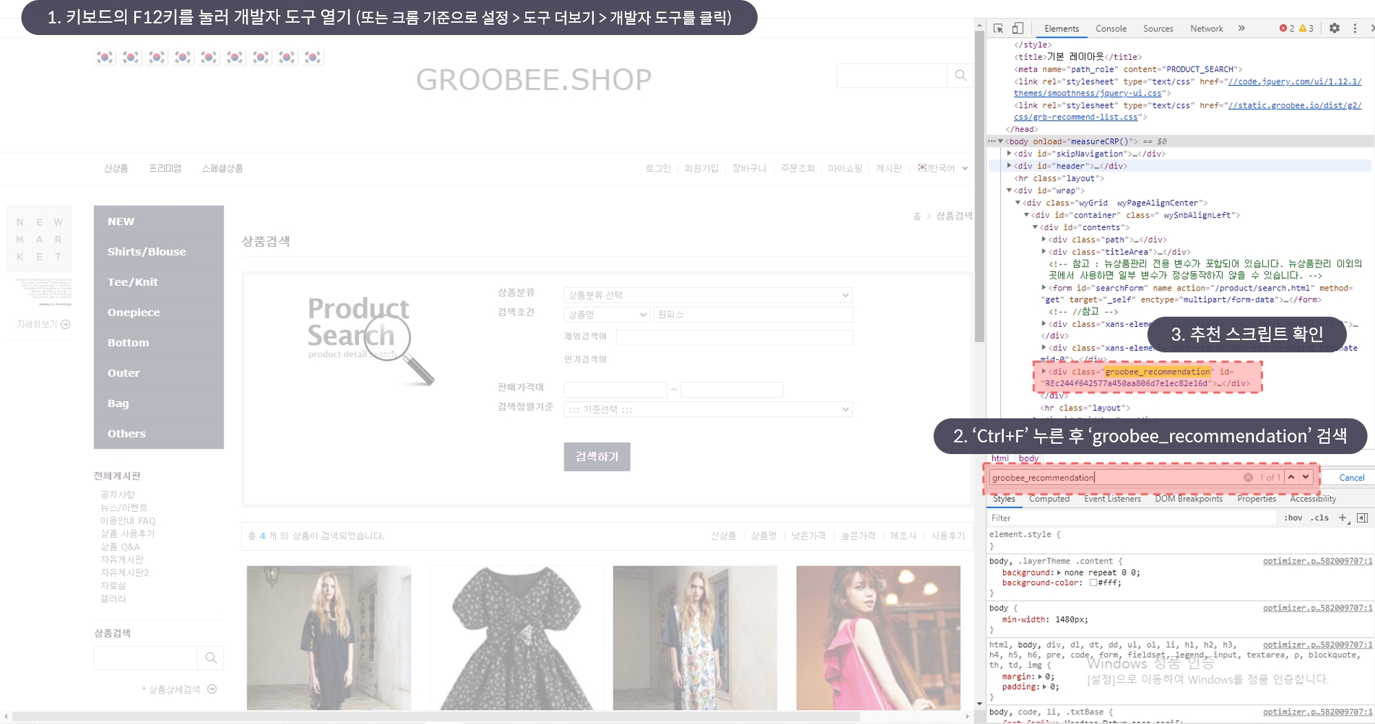 실행한 추천의 스크립트가 쇼핑몰 검색 결과 페이지안에 삽입되어 있어야 합니다.