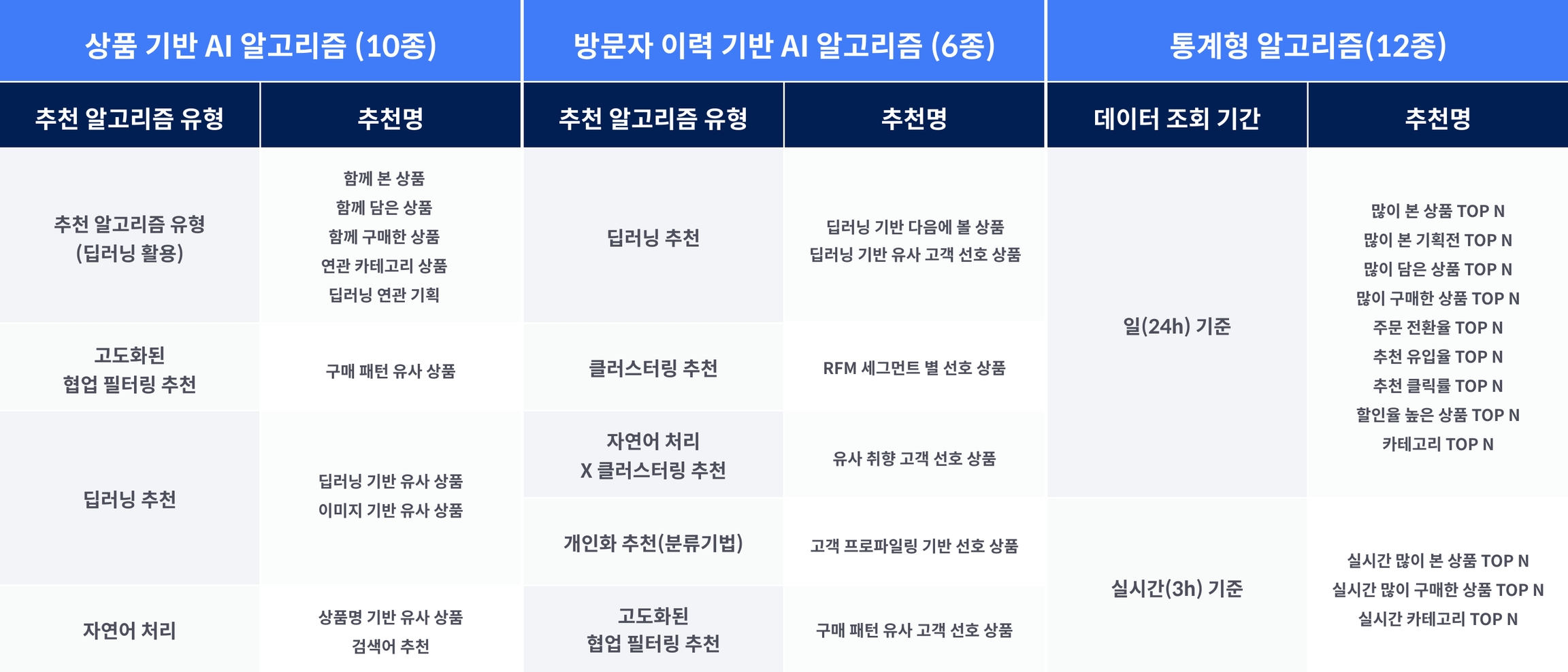 • 설정한 노출 페이지에 따라 사용 가능한 알고리즘이 달라집니다.