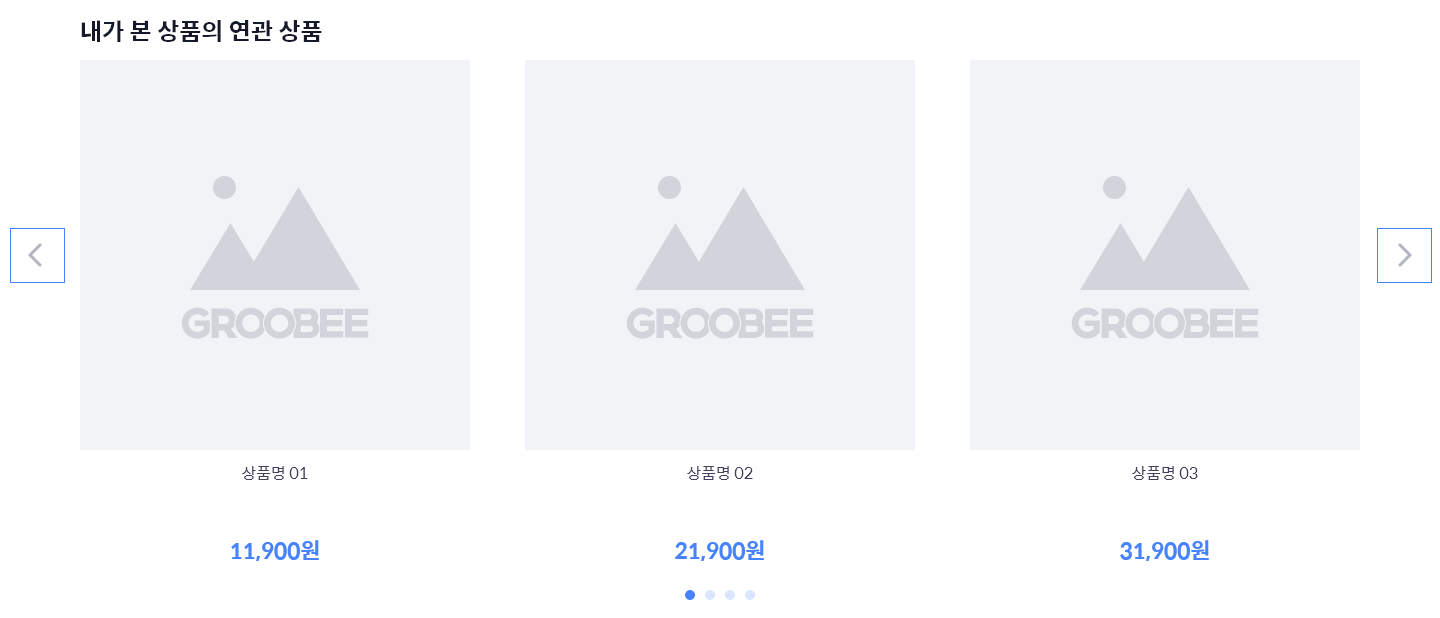 • 화살표는 추천 영역의 좌, 우에 위치하며 첫 페이지와 마지막 페이지에는 각각 왼쪽, 오른쪽 화살표가 표시되지 않습니다.