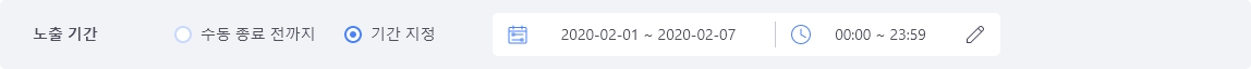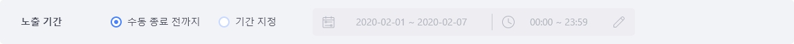 • 추천을 특정 기간동안에만 노출하려고 한다면 '기간 지정'을 선택해 시작일과 종료일을 입력해주세요.