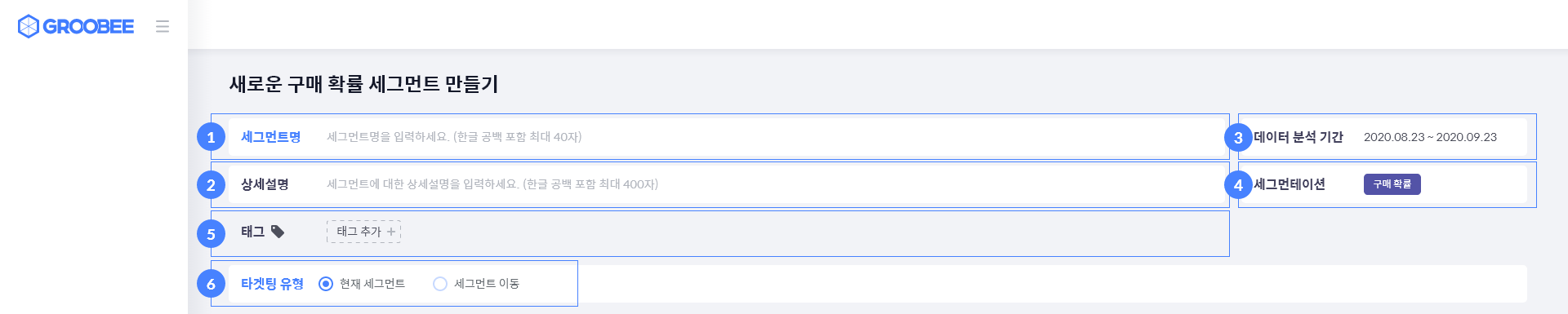 AI 세그먼트 생성을 위한 작성 필수 항목입니다.
