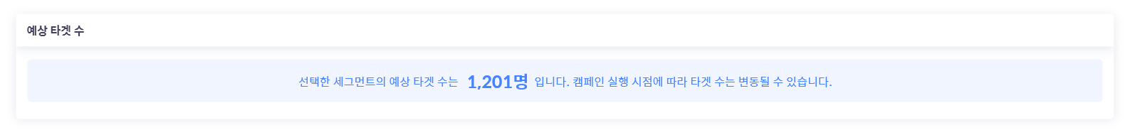 예상 타겟 수: 선택한 세그먼트의 예상 고객 수를 확인할 수 있습니다.
