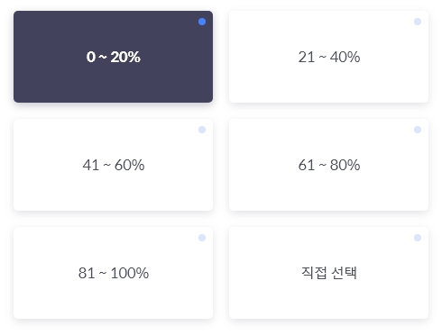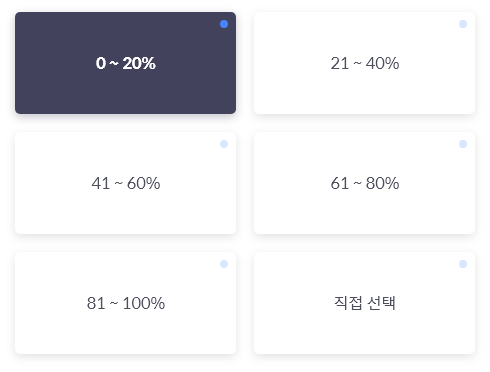 '직접 선택' : 임의의 확률 구간을 지정합니다. 그래프 내 위치한 바 가장자리를 클릭한 후 마우스 드래그하면 원하는 확률 구간을 직접 지정할 수 있습니다. (ex. 55~95%)