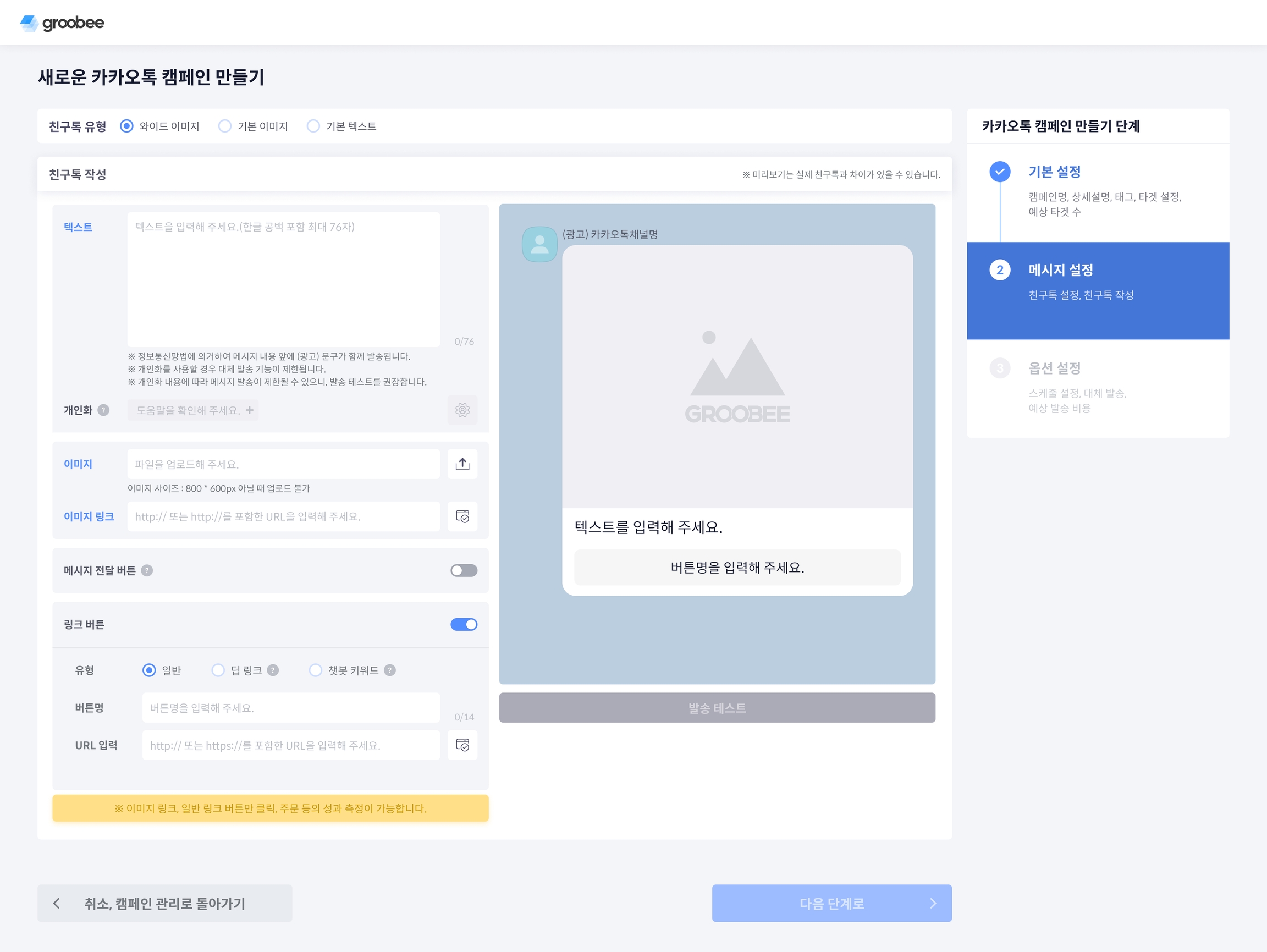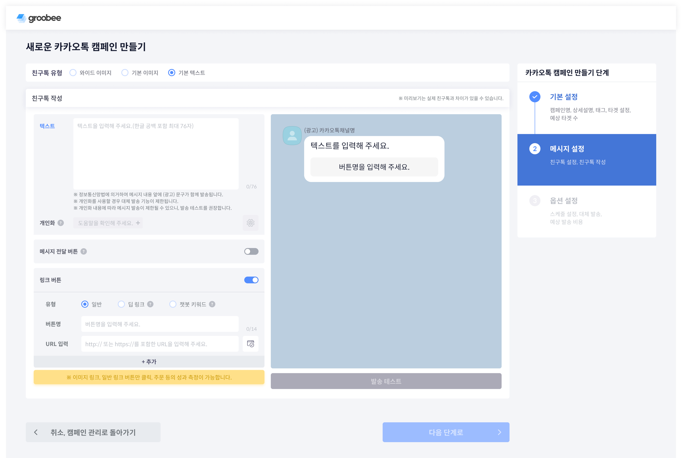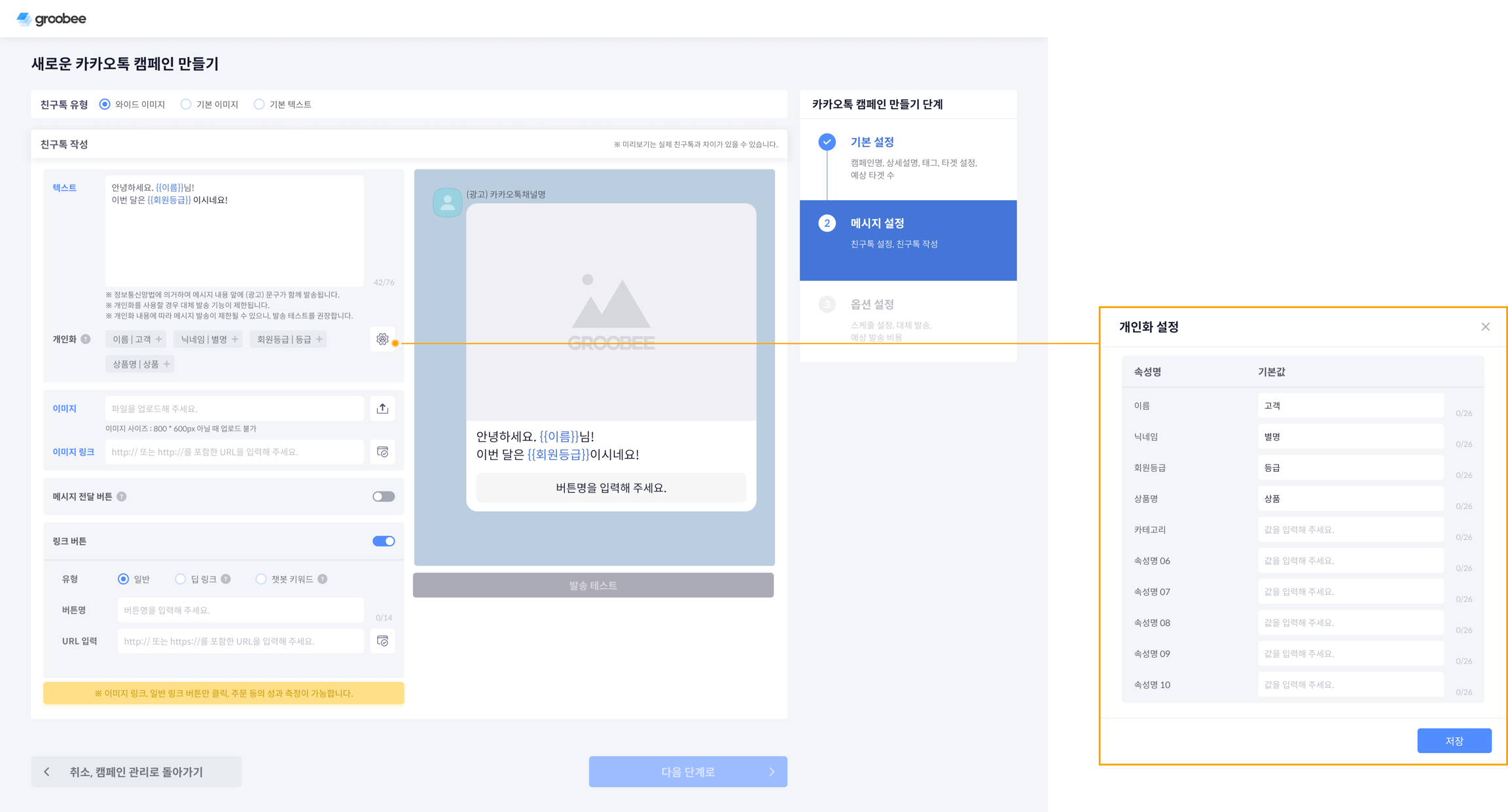 카카오톡 캠페인 2단계 메시지 설정