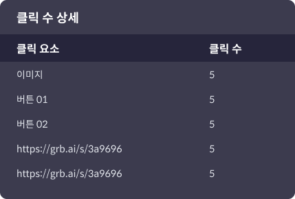 상세 보기 클릭 시 캠페인 생성 시 설정한 클릭 요소들의 개별 클릭 수를 확인할 수 있습니다. 이미지 링크는 '이미지'로, 일반 링크 버튼은 설정한 버튼명으로 표시됩니다.