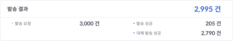 발송 결과 : 친구톡 발송 성공 건수와 대체 발송 성공 건수의 합계를 표시합니다.