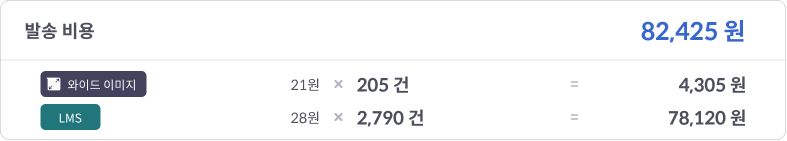 발송 비용 : 친구톡 발송 성공으로 과금된 금액을 표시합니다. 표시된 금액은 VAT 미포함 금액입니다.