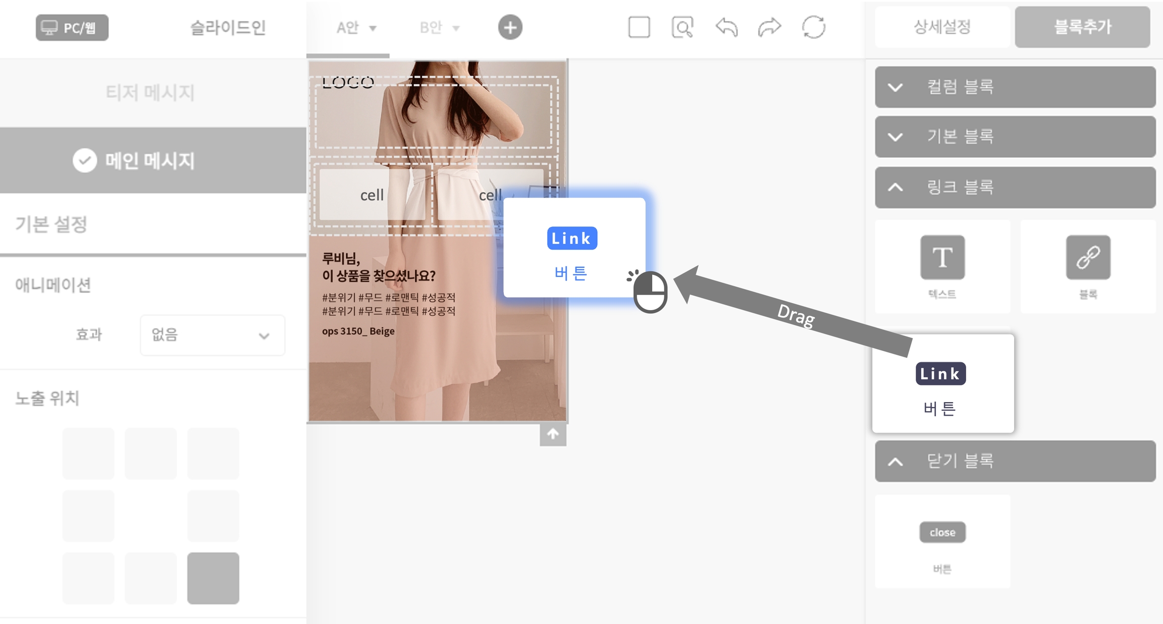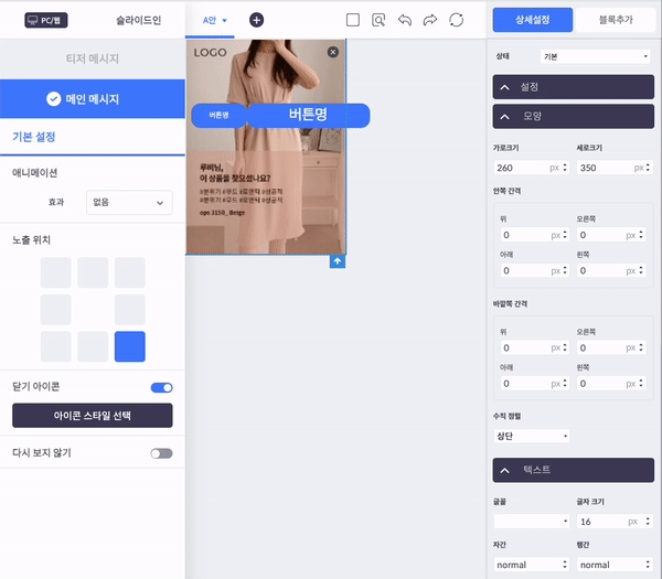 메시지 디자인에 맞춰 CTA 버튼을 설정해주세요.