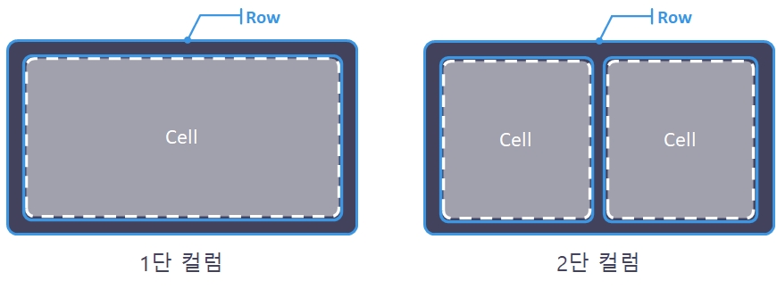 컬럼 블록을 추가하여 메시지 레이아웃을 구성합니다. 컬럼 블록은 [Row]와 [Cell]로 이루어진 형태로 구성되어있습니다.