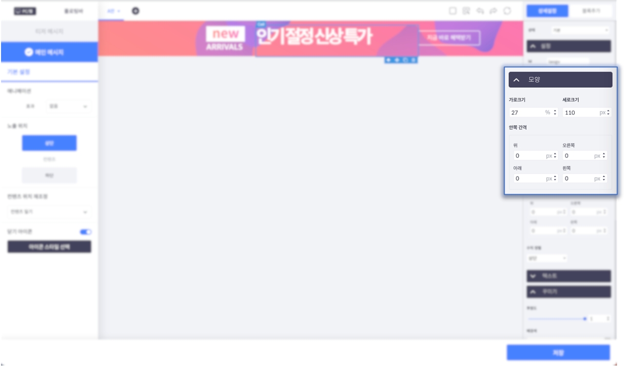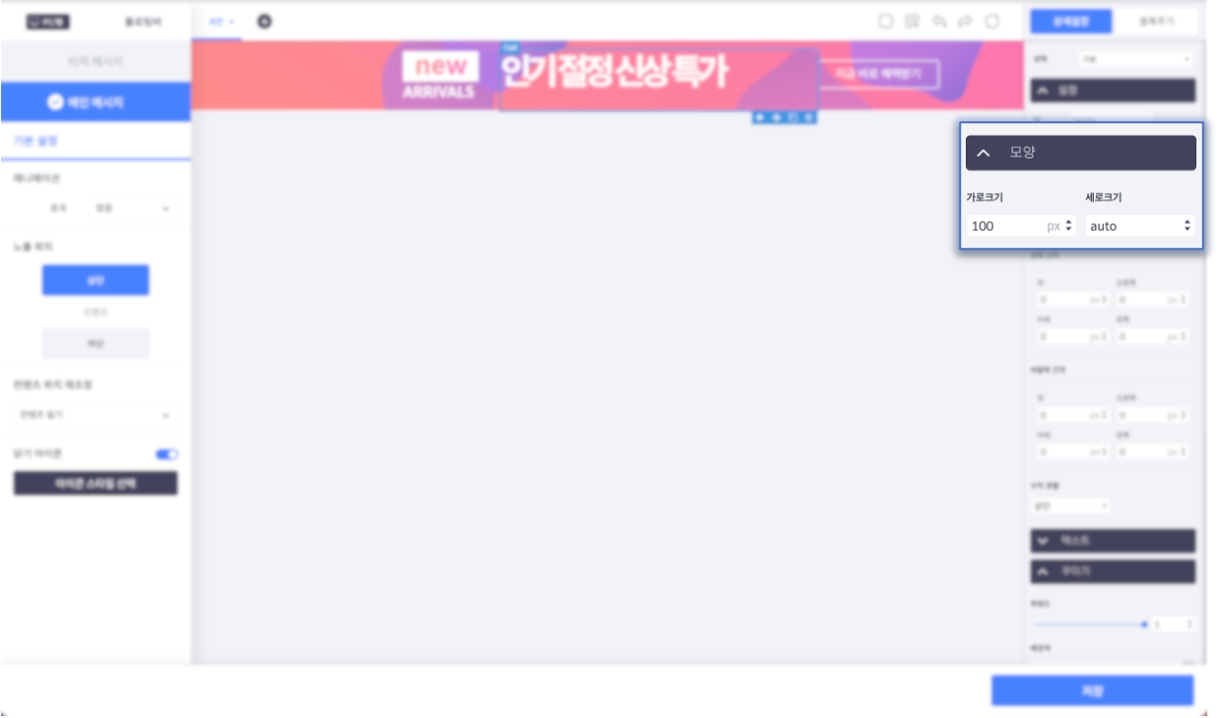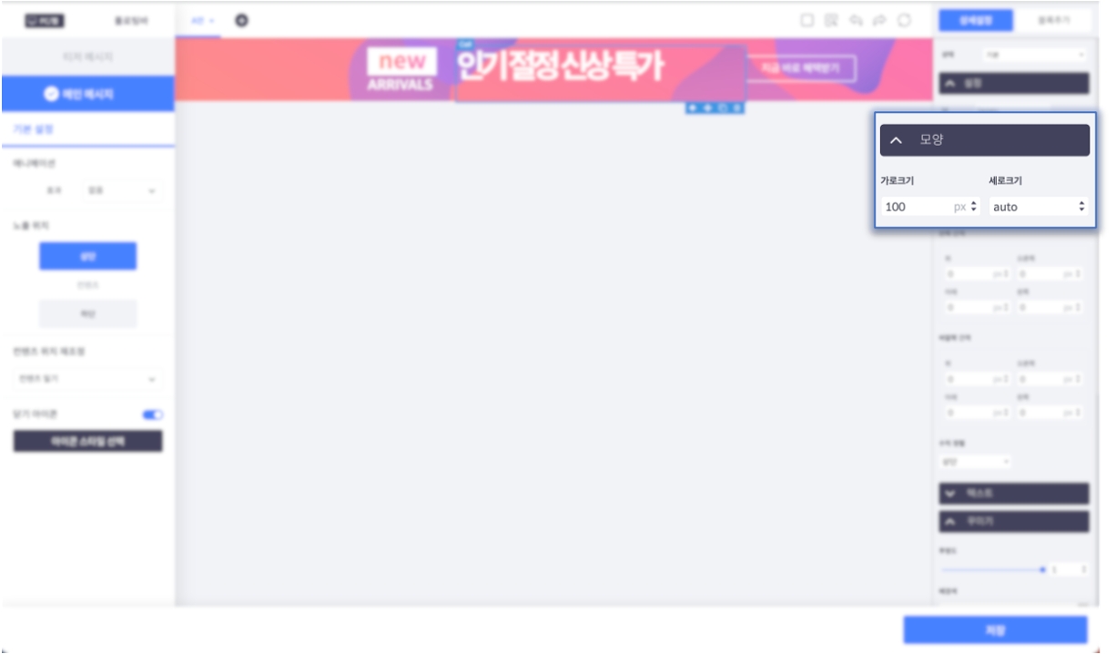 사이즈를 px 단위로 지정해 사용했더니 양쪽 빈 공간이 생겼어요! -> 아래 방법을 참고하여 캠페인 에디터 '모양 > 가로 크기'를 설정해 주세요.