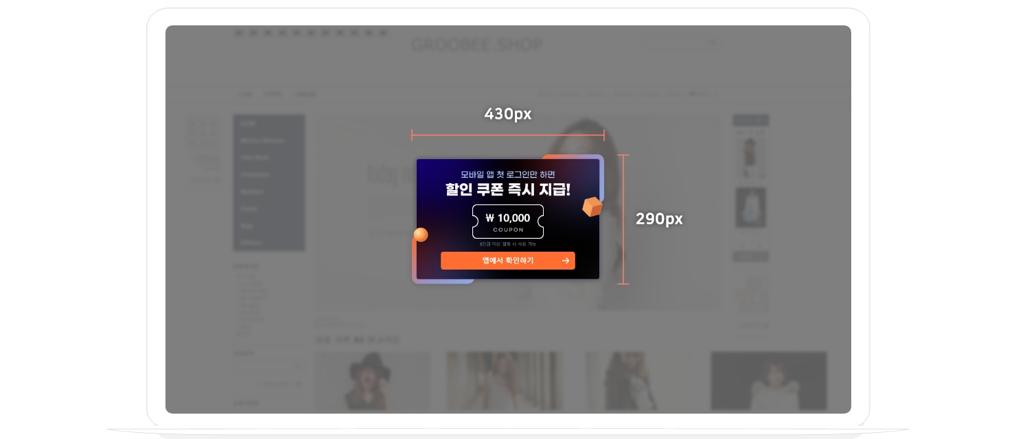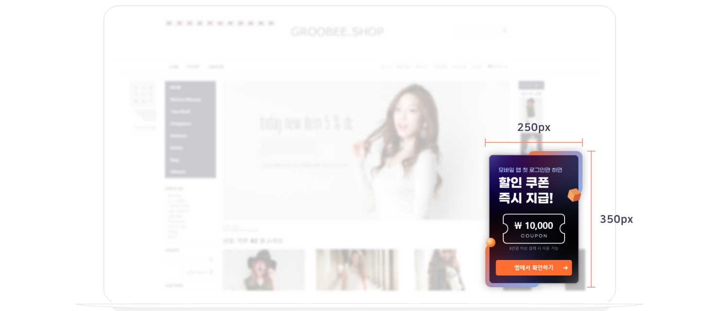 풀 스크린 메시지 같은 경우 [GroobeeWrap] 권장 사이즈 320 * 480px 이지만, 사이트 특성에 맞춰 자유롭게 설정할 수 있습니다.