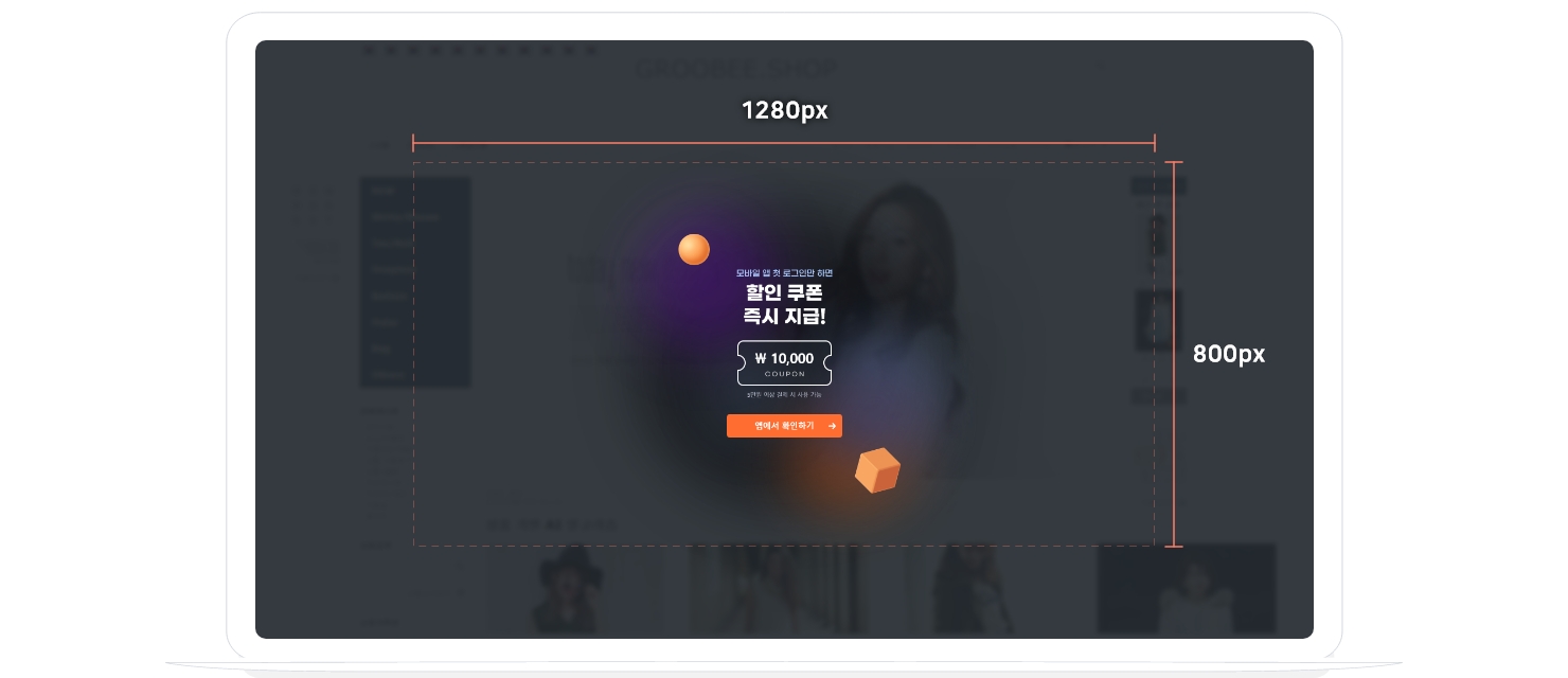 풀 스크린 메시지 같은 경우 [GroobeeWrap] 권장 사이즈 1280 * 800px 이지만, 사이트 특성에 맞춰 자유롭게 설정할 수 있습니다.