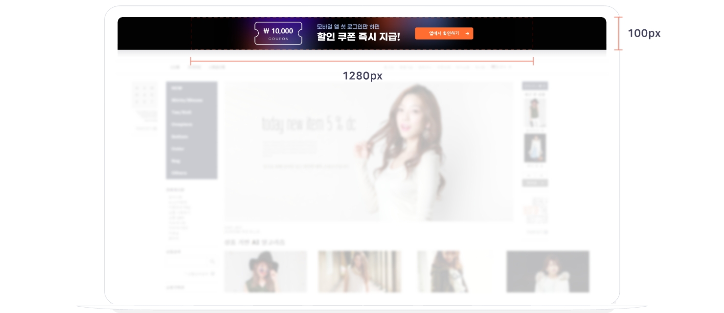 긴 띠배너 형태로 상단 또는 하단에 캠페인(메시지)을 노출합니다.