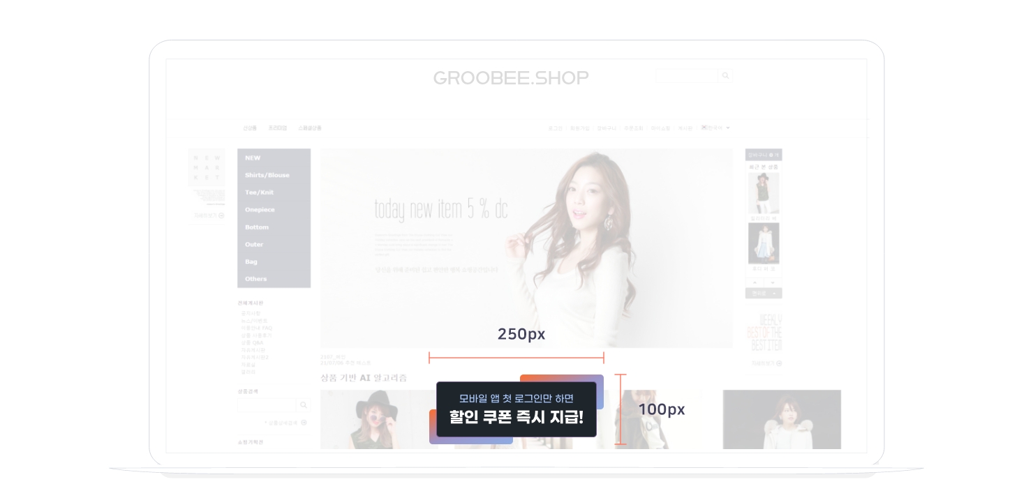 권장 사이즈는 250 * 100px 이지만 가로 320px 이하로 자유롭게 설정할 수 있습니다.