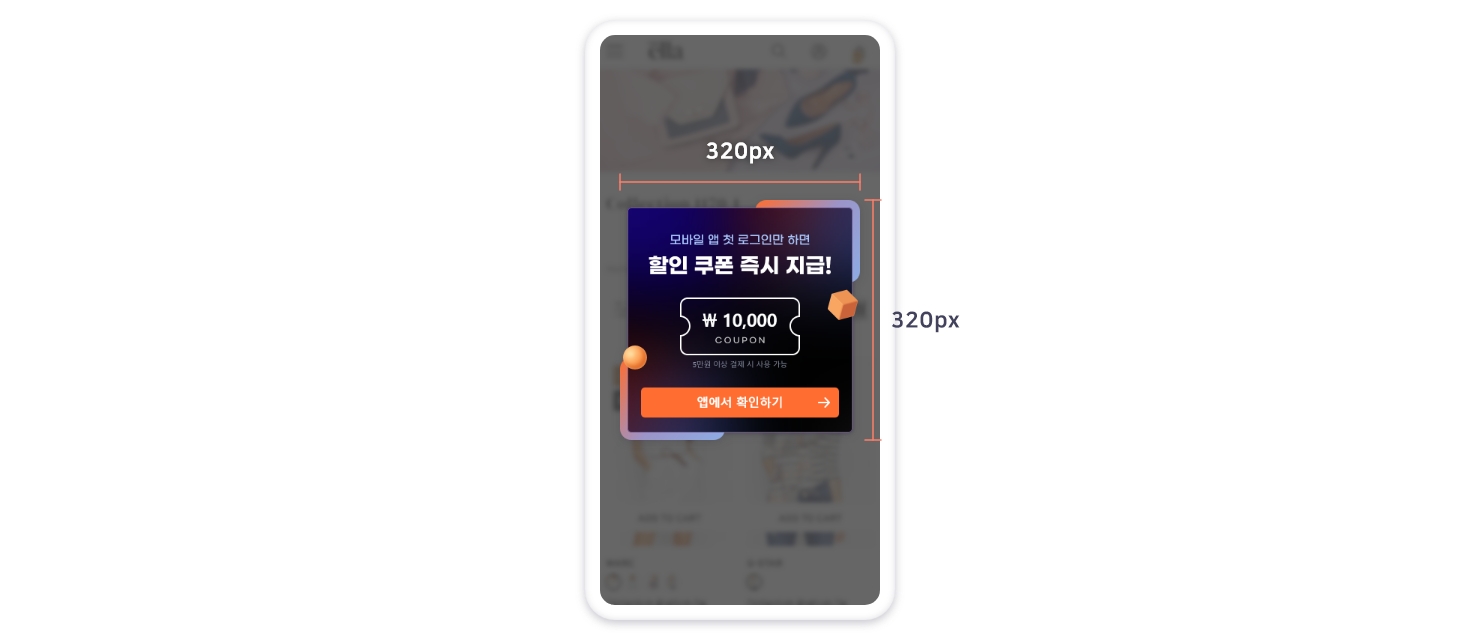 팝업 메시지 유형은 반투명 배경 위에 캠페인(메시지)을 강조하여 노출합니다.