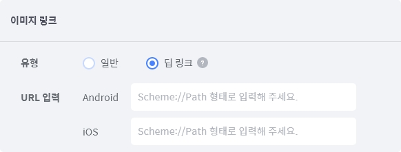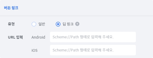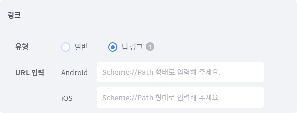• Android, iOS 두 OS 유형의 링크 값을 Scheme://Path 형태로 200자 이내로 입력해 주세요.