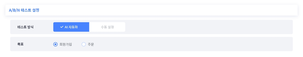 • 테스트 방식은 AI 자동화, 수동 설정 두 가지입니다.
