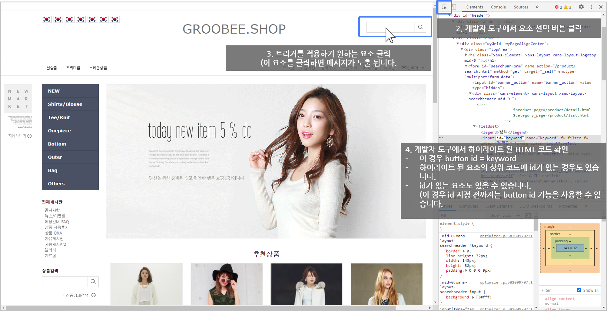 해당 트리거 조건을 사용하기 위해서는 웹페이지 내 요소의 ID 값이 필요합니다.
