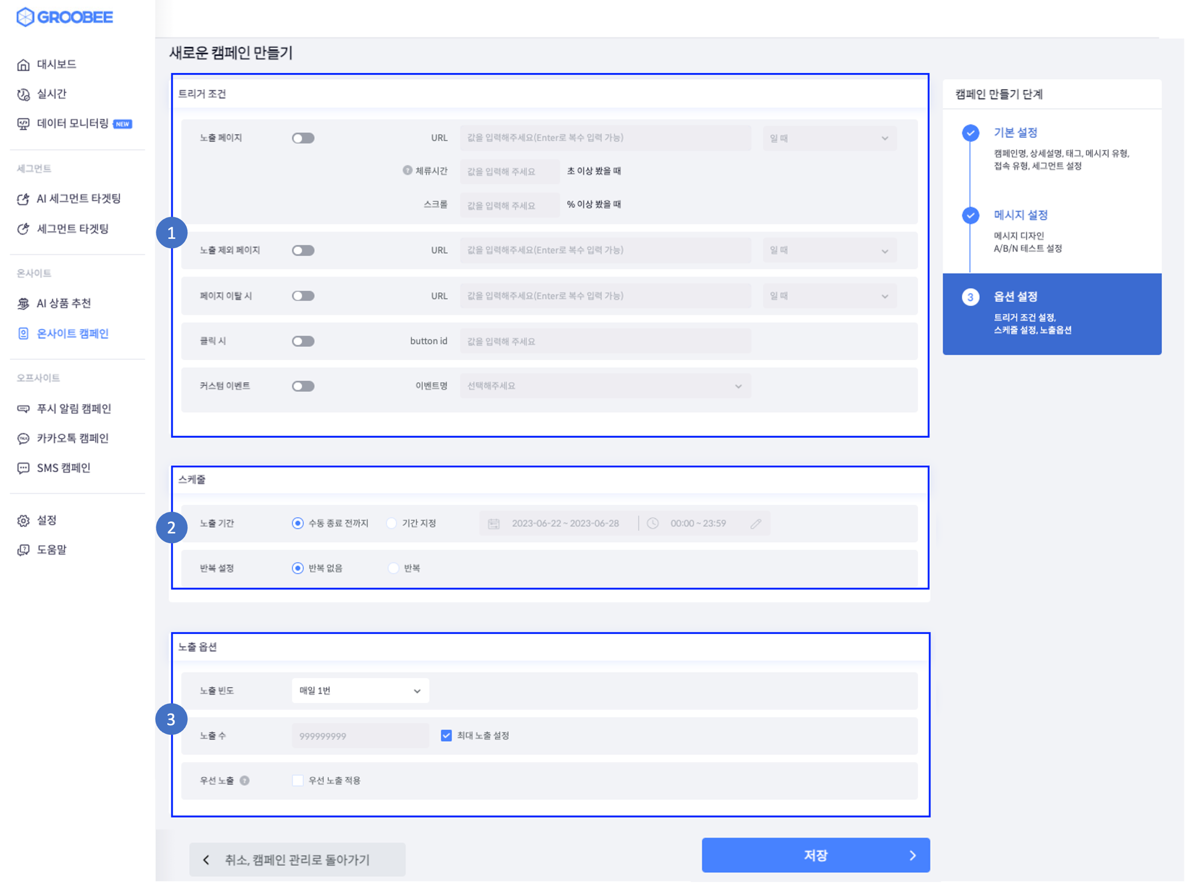 온사이트 캠페인 3단계 옵션 설정
