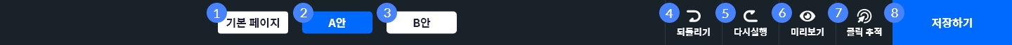 다이내믹 페이지 에디터의 상단 메뉴 기능은 다음과 같습니다.