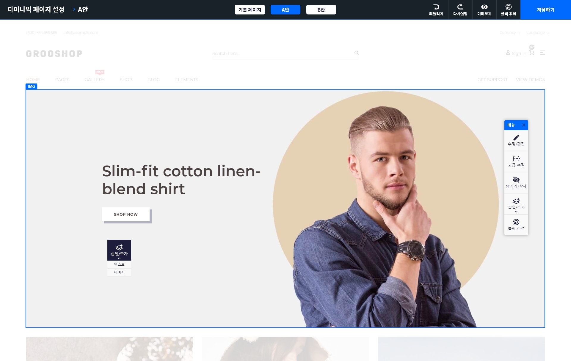 3. B 안: 다이내믹 페이지 B 안 수정 화면으로 이동합니다.