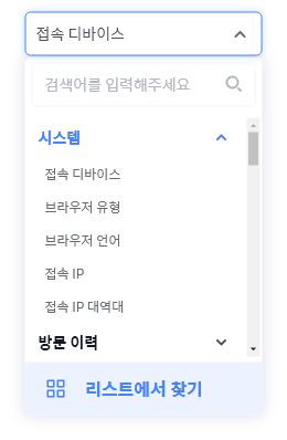 추가한 변수를 수정하고 싶을 때에는 변수명 영역을 클릭하여 드롭다운을 이용하여서 선택하거나, 드롭다운 아래의 [리스트에서 찾기]에서 변수 레이어를 통해 선택할 수 있습니다.