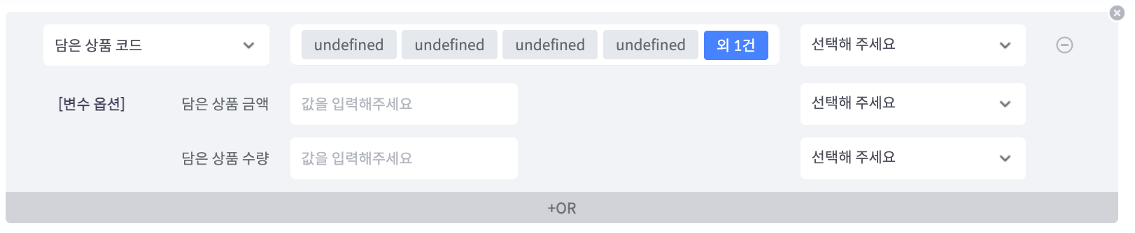 (5) OR 조합의 변수 추가 : 클릭 시 변수 선택 레이어가 열립니다.