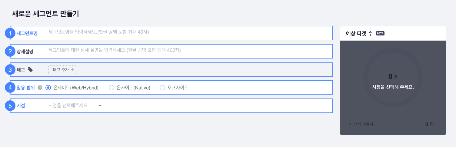 세그먼트 생성을 위한 작성 필수 항목입니다.