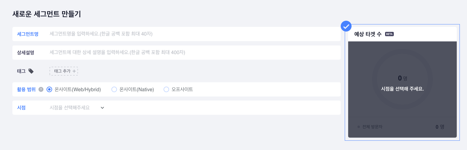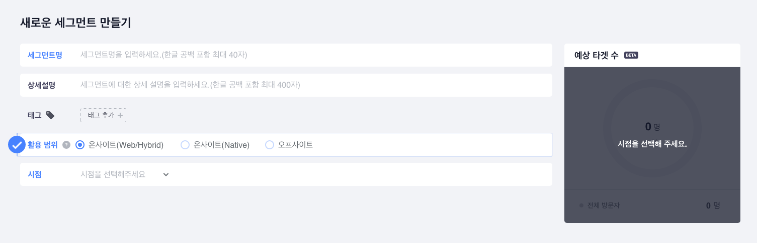 활용 범위: 진행할 캠페인에 따라 세그먼트의 활용 범위를 선택할 수 있습니다.
