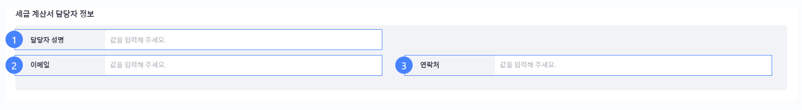 담당자 성명: 세금 계산서 담당자명을 입력해 주세요.