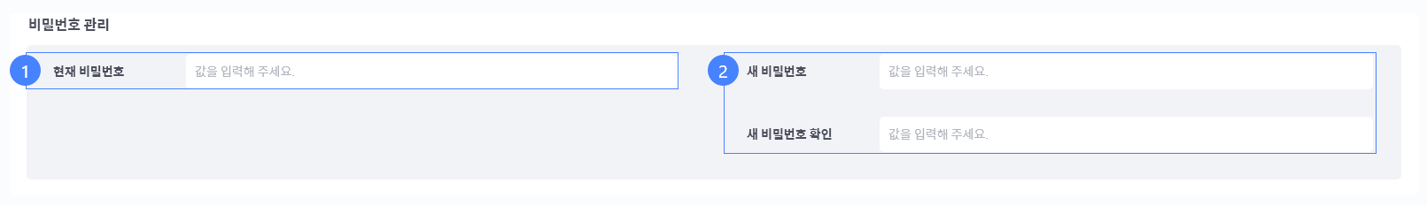 현재 비밀번호: 현재 비밀번호를 입력해 주세요.