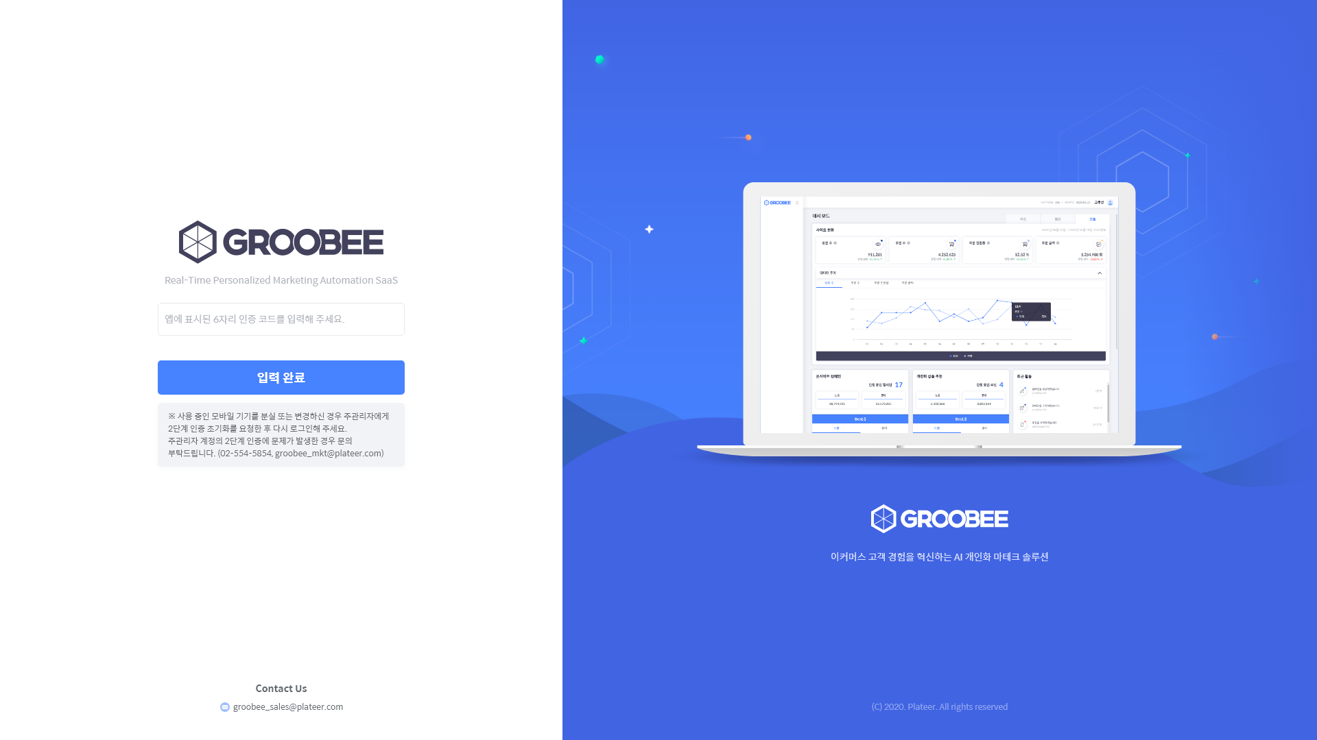주관리자 계정의 2단계 인증에 문제가 발생한 경우 문의해 주세요. (02-554-5854, [email protected])