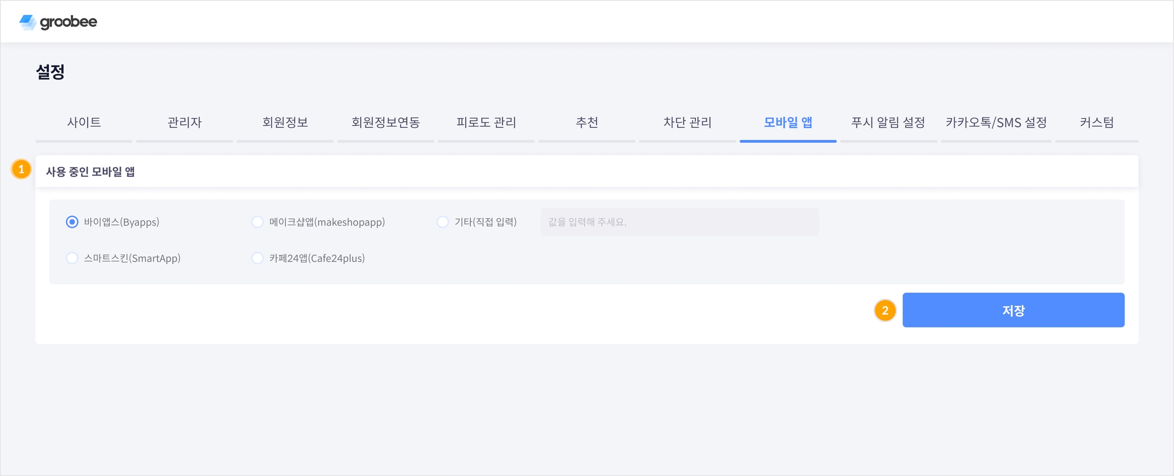 모바일 앱 설정을 위해서는 현재 사용하고 계신 모바일 앱 서비스의 유저 에이전트 정보를 선택하여 설정합니다
