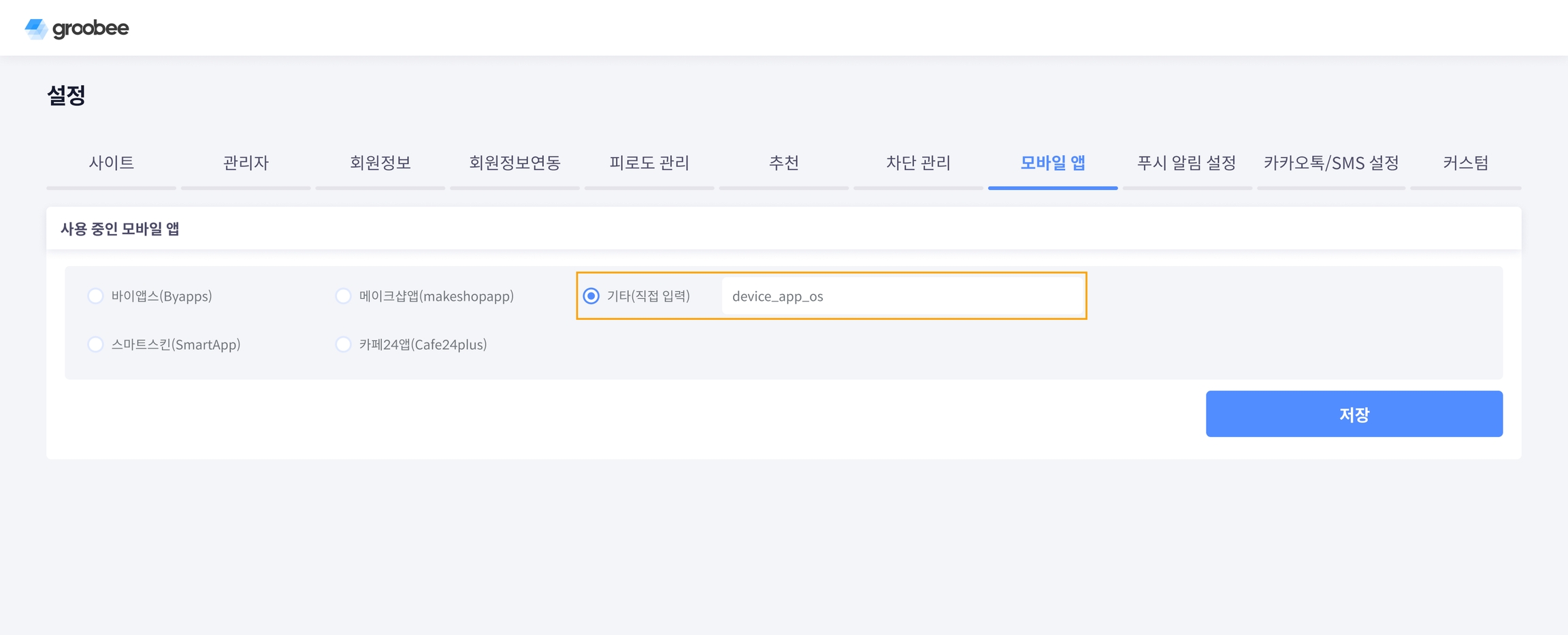 방문자가 모바일 웹으로 접속한 경우와 모바일 앱(하이브리드 앱)으로 접속한 경우를 구분하기 위한 설정입니다.