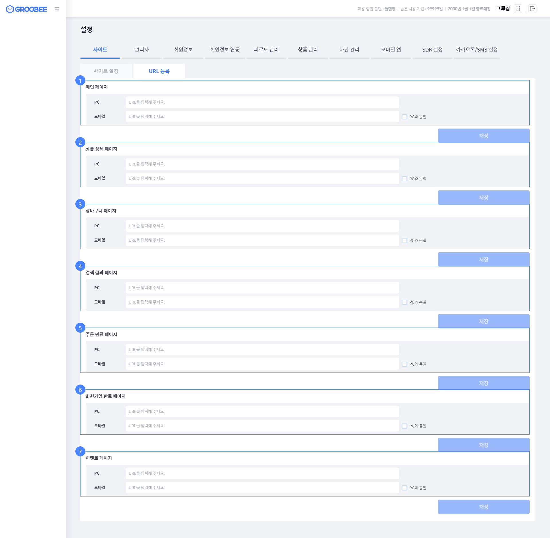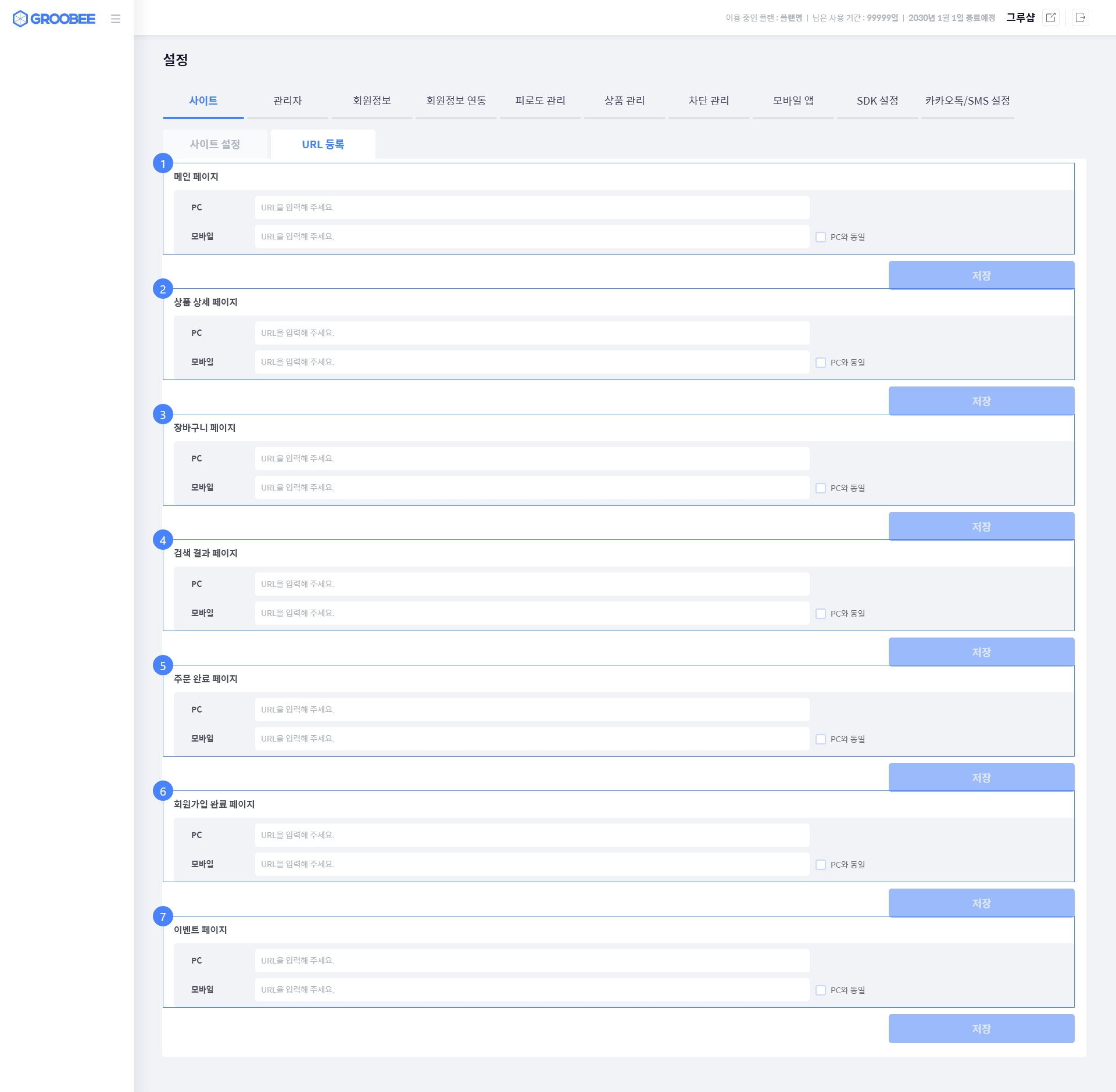 PC/웹 사이트 URL: 서비스에 연결된 웹 사이트 PC URL을 입력해 주세요.