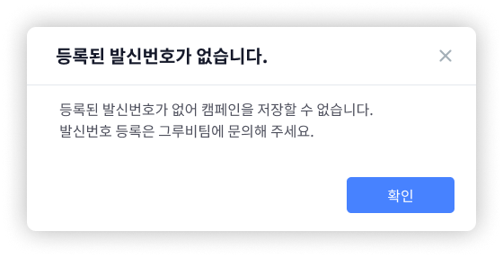 만들기 실패 : 캠페인 생성 중 발신 프로필 또는 발신 번호를 발신 대상에 등록하는 과정에서 실패하여 중단된 상태입니다. 수정하기 화면 진입 후 저장 버튼을 누르면 전송을 다시 시도합니다.
