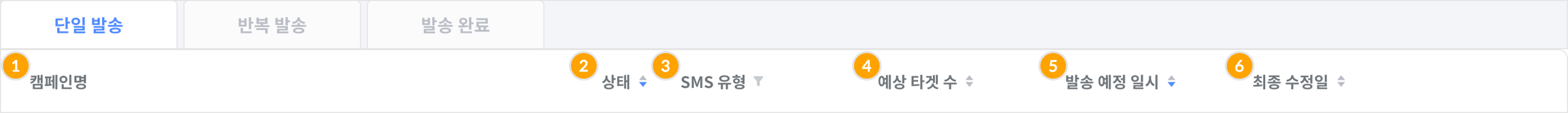 단일 발송 : 1회만 발송하는 캠페인 리스트를 확인할 수 있습니다.