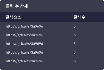 상세 보기 클릭 시 캠페인 생성 시 설정한 단축 URL의 개별 클릭 수를 확인할 수 있습니다.