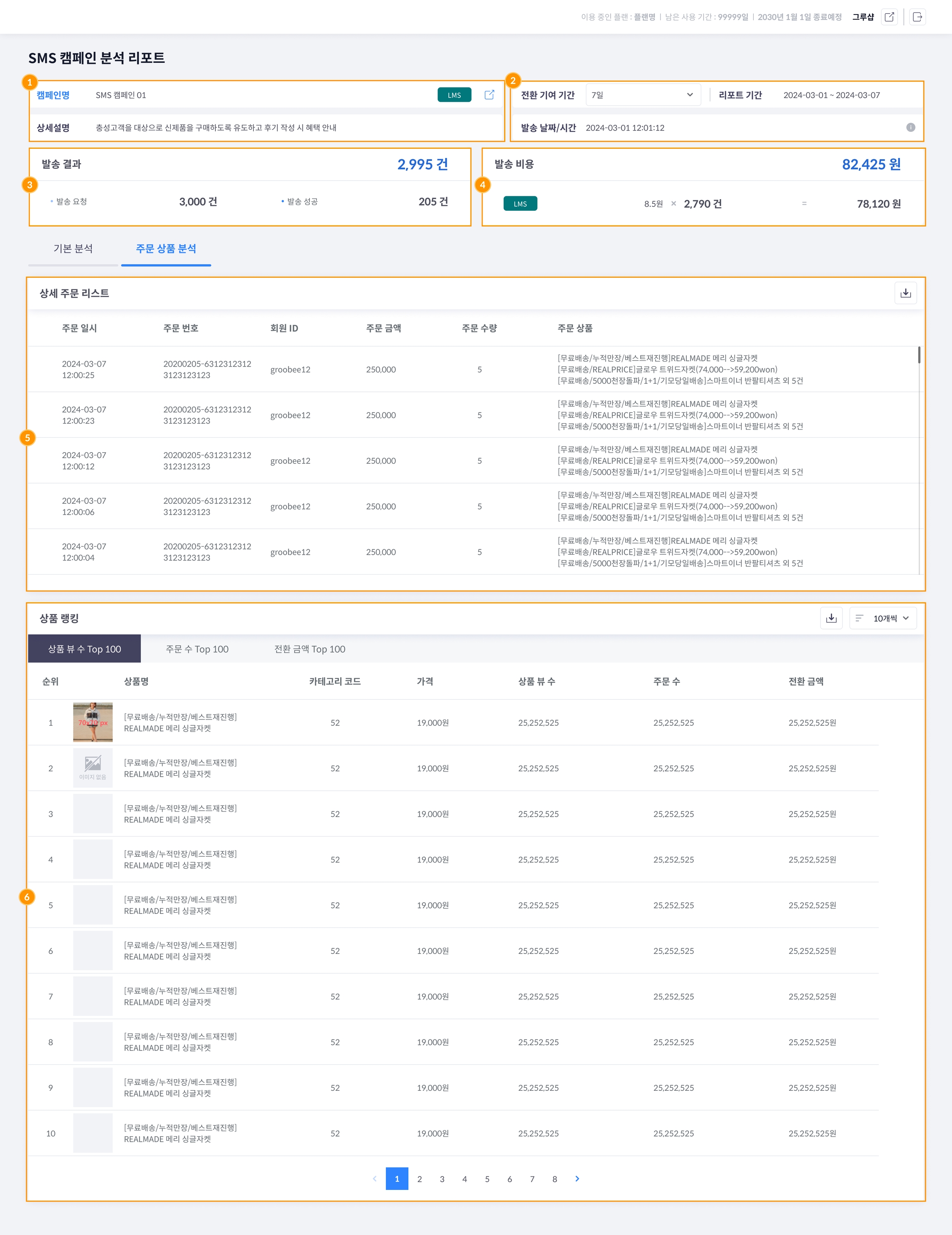 SMS 캠페인 주문 상품 분석: 단일 발송