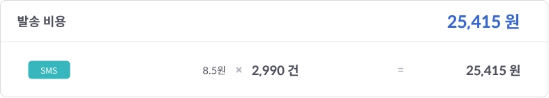 SMS 발송 성공으로 과금된 금액을 표시합니다.