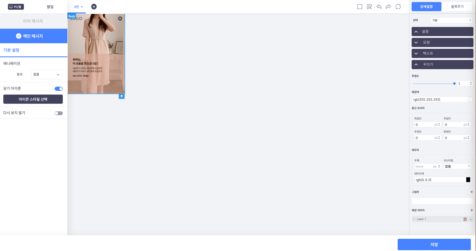 불러온 이미지 그대로 저장해도 되지만 이미지 설정 값을 조정하면 이미지 크기에 약간의 오차가 발생해도 메시지 디자인을 최적화 할 수 있습니다.